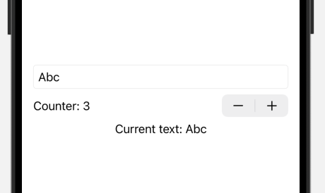 • @Stateプロパティは、ビューの状態を管理するために使用されます。この例では、テキスト入力の値を保持します。