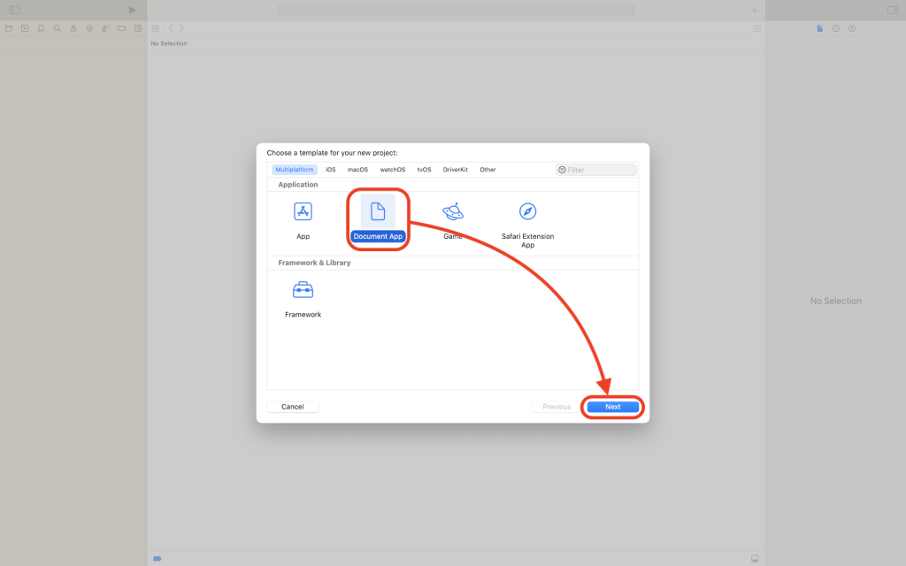 プロジェクトのテンプレート選択で「Document App」を選択します