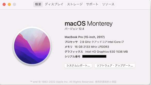 上記画面のバージョン12.4という箇所が現在のOSのバージョンです。