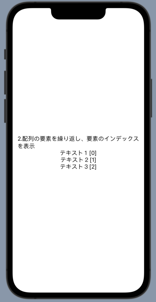 Text("2.配列の要素を繰り返し、要素のインデックスを表示")