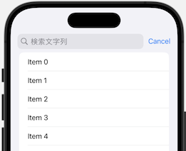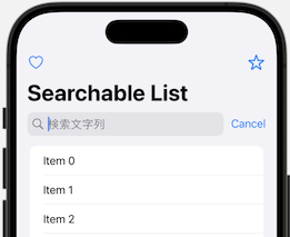 .searchable(text: $searchText, placement:.navigationBarDrawer(displayMode: .always), prompt: "検索文字列")