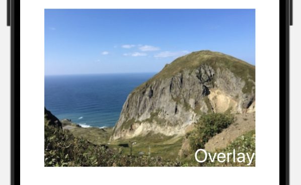 この例では、テキストビューを背景画像のleading(左揃え)center(中央揃え)、bottomTrailing(右下揃え)にそれぞれ配置しています。