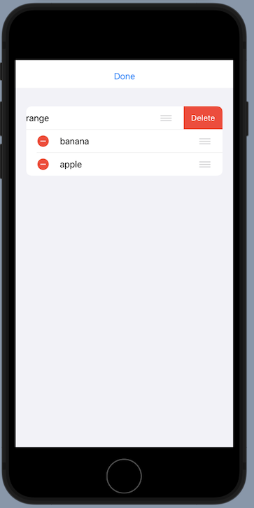例えばListにonDeleteやonMoveを使用すると、EditButtonを押すと編集可能なモードとなり、リストからデータを削除したり移動させたりできます。