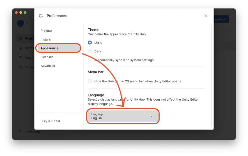 Unity Hubにおいて日本語へ設定変更する方法を紹介します。