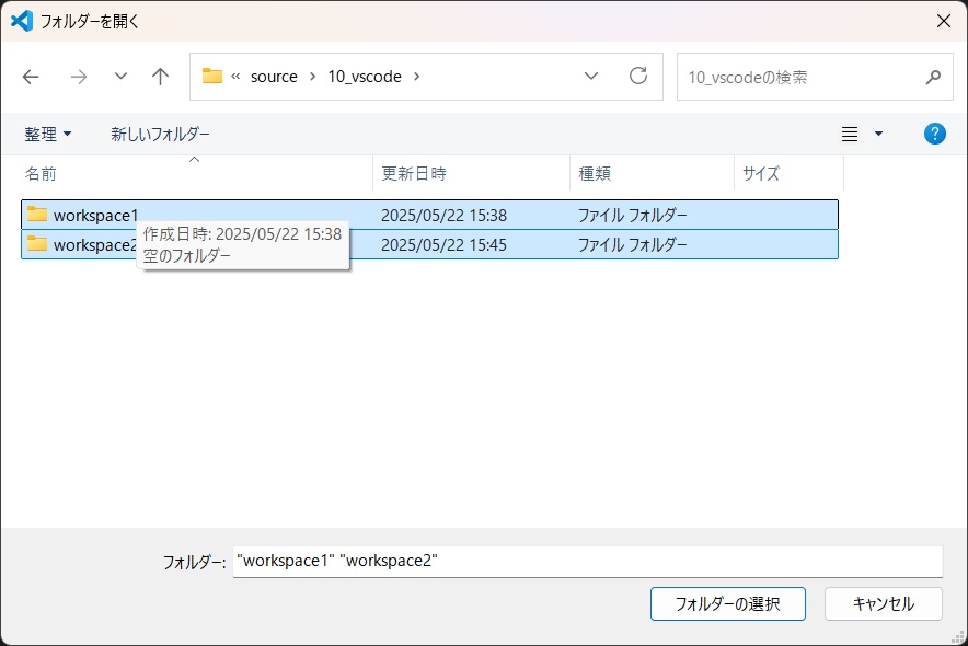 通常、VSCodeでは単一のフォルダーを開いて開発を行いますが、ワークスペースを使うことで、複数のフォルダーを同時に開き、一元的に管理することができます。